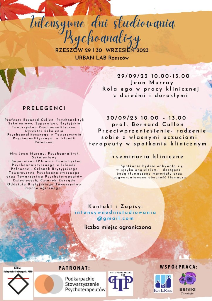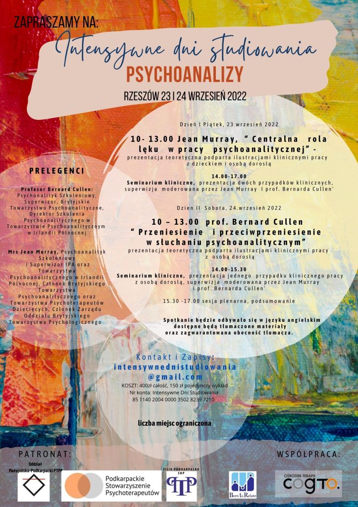 Intensywne Dni Studiowania Psychoanalizy Rzeszów 23/24 Wrzesień 2022