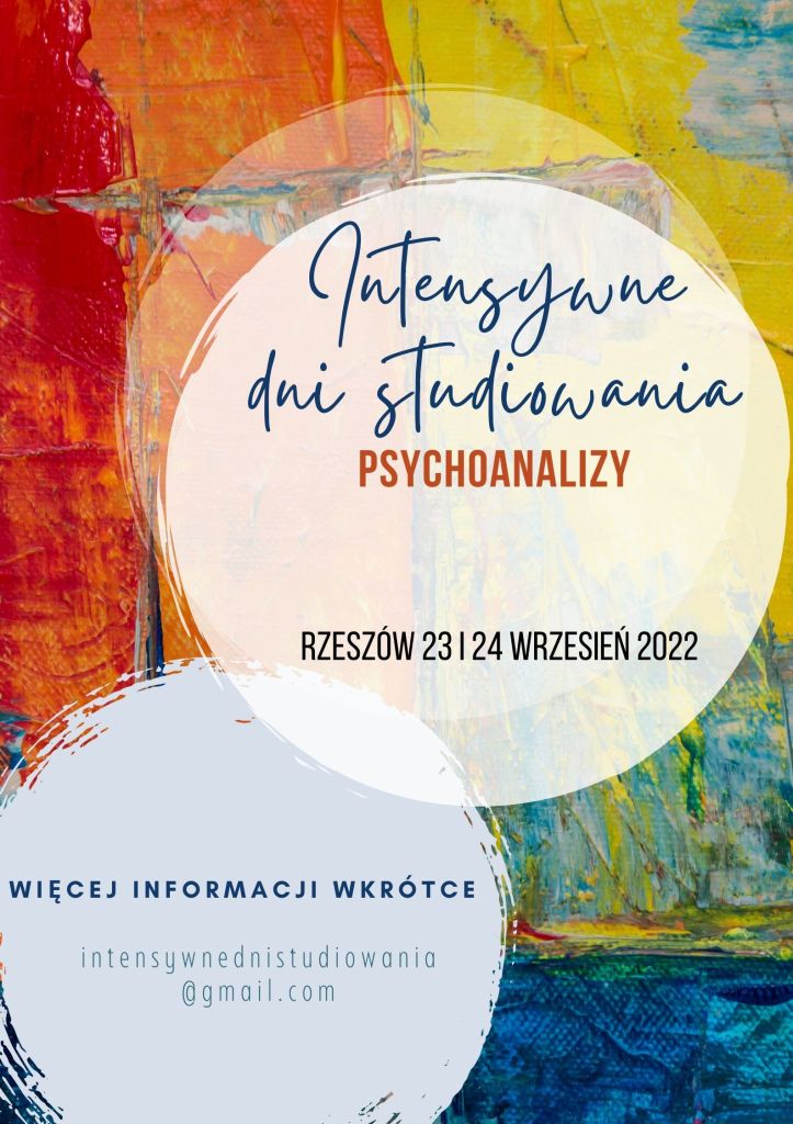 WKRÓTCE INTENSYWNE DNI STUDIOWANIA PSYCHOANALIZY Rzeszów, 23/24.09.2022 Komitet Organizacyjny: Aleksandra Hytroś-KiwałaBarbara NiedzielaArletta KubickaAnna Podstawska intensywnednistudiowania@gmail.com Share this: Share on X (Opens in new window) X Share on Facebook (Opens in new window) Facebook Like Loading...